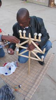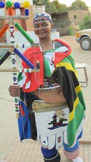 This form of dancing staff or stick surfaced during the era when electrification had not yet reached much of rural South Africa and was coveted by women who worked in places where electricity (and telephone) poles were a common sight. So desirable was the idea of electric light, that Ndebele women began incorporating the shapes of electric lamps into the traditional geometric wall paintings they made on the front walls of their homes. The Ndebele aesthetic, passed down from mother to daughter for generations was made world famous by well-known artist Esther Mahlangu, who exhibits her interpretation of Ndebele art on canvas in galleries across the globe. In time, as electrification reached areas outside towns and cities, the Itelefoni dancing staff became less of a feature of Ndebele traditional life, with simpler shapes replacing its ornate form in contemporary staffs. But since Sophie and Petrus Mahlangu began preparing the awards given to the 2012 BASA winners, in rural Mpumalanga memories have been surfacing of the way Ndebele women would ceremonially dance with their ornate Intelefoni in hand, upon the completion of their sons' initiation rites (ukuwela). What would a contemporary equivalent be one wonders - a cell phone tower? |